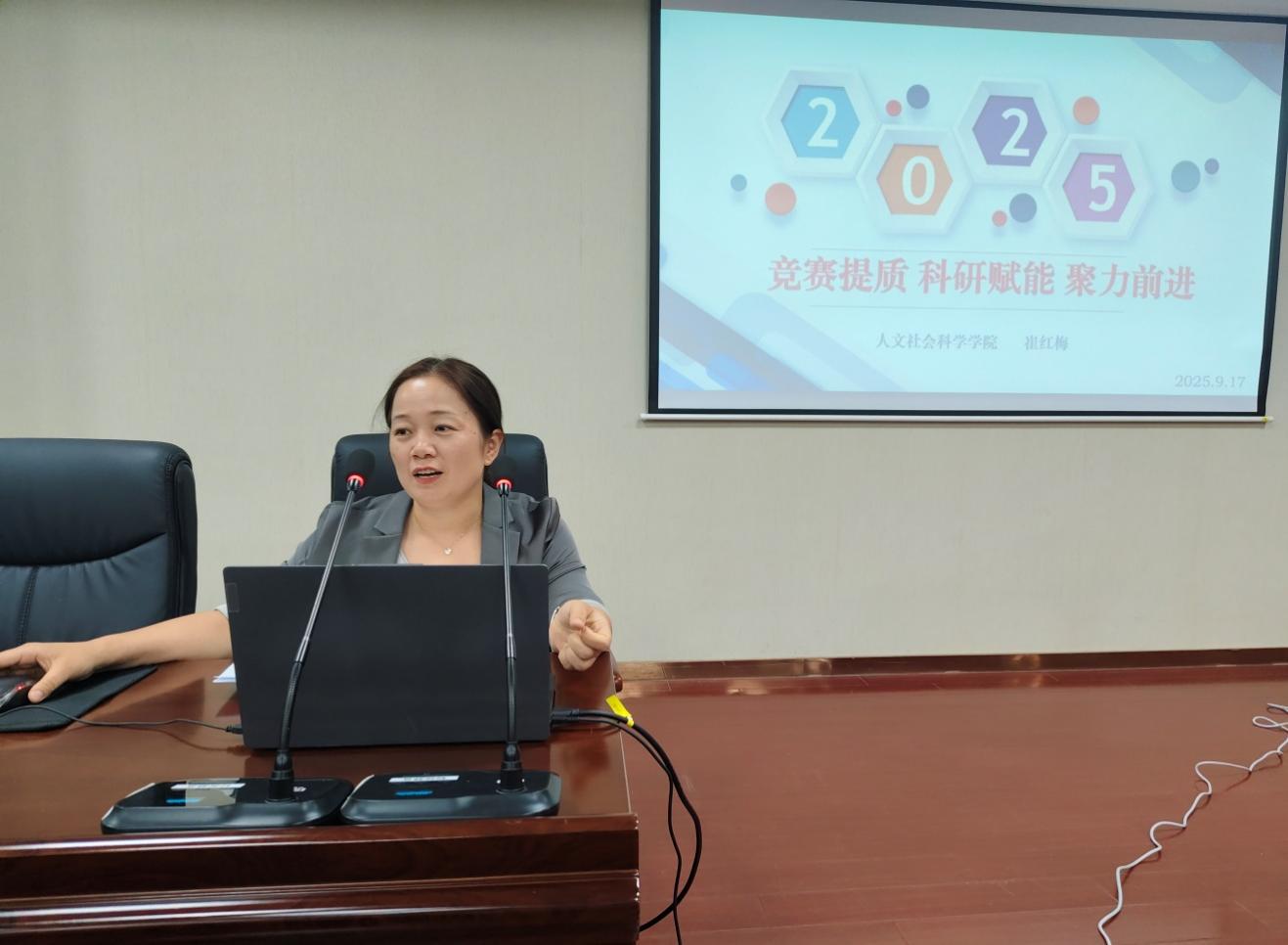 9月17日下午,人文社会科学学院在行政楼215会议室召开2025年秋季学期全体教职工大会。院党政班子成员、特聘教授以及全体教职工参加了会议。会议由校长助理、学院院长黄兴主持。