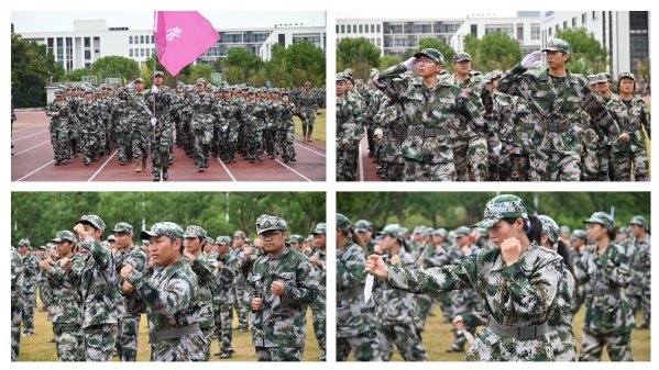 随后,2025级军训团依次进行分列式和汇报表演,各方阵在教官的带领下整齐列队,精神抖擞地接受检阅,同学们迈着铿锵有力的步伐通过主席台,队形变换整齐划一,军容军姿规范标准。男生方阵带来的擒敌拳表演气势如虹,出拳、踢腿、格挡动作刚劲有力,尽显少年锐气;女生方阵的匕首操同样惊艳,握刀、刺杀、防守连贯流畅,动作精准利落。同学们用坚持与执着展现了两周军训的扎实成效,更诠释了新时代青年不惧风雨、迎难而上的精神风貌。