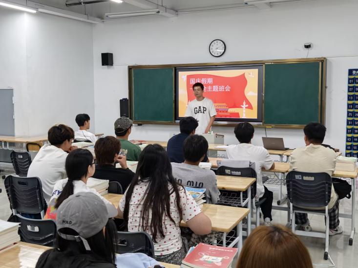 随着国庆假期临近,班会重点围绕出行安全、防诈骗、宿舍防火防盗等内容展开。辅导员老师们结合高校典型案例,提醒学生离校前切断电源、锁好门窗,妥善保管贵重物品;出行时选择正规交通工具,避免前往未开发区域,谨防溺水、交通事故等风险。