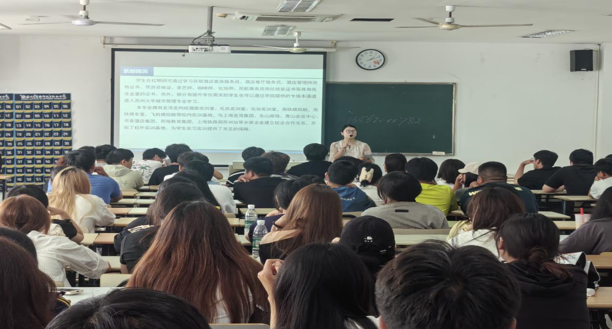 初秋启新程,逐梦正当时。为帮助 2025级新生快速融入校园生活、理清专业学习脉络、初步规划职业方向,国际商学院社会服务系于9月25日精心组织了2025级系部新生入学教育系列活动。本次活动由社会服务系副主任王昊涵老师主持,国际商学院副院长牛伟教授、国际商学院管理类专业带头人罗正英教授、上海亚湾酒店管理有限公司受邀出席,现代乘务专业、酒旅专业教师全部到场,为初入校园的萌新生们,送上了一堂兼具指导性、实用性与温度的 “开学第一课”。