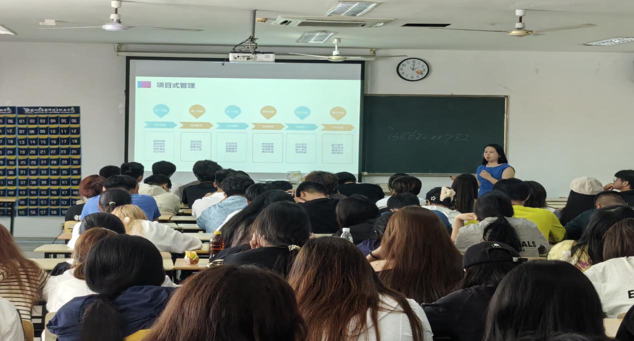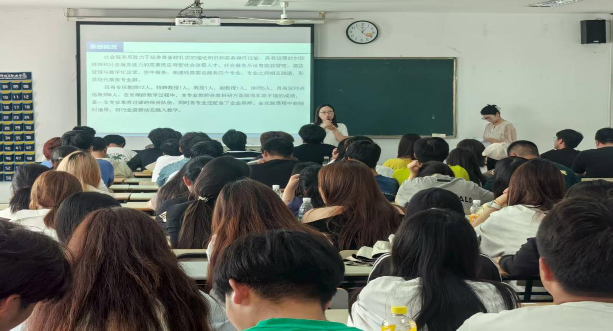 同时,社会服务系副主任王昊涵老师为学生深入浅出地从系部专业设置、师资力量、实训资源、毕业要求、学历提升等多个方面进行了解读,为学生的大学三年学习提供了清晰指引,加强了学生的专业认同感和三年校园学习规划。