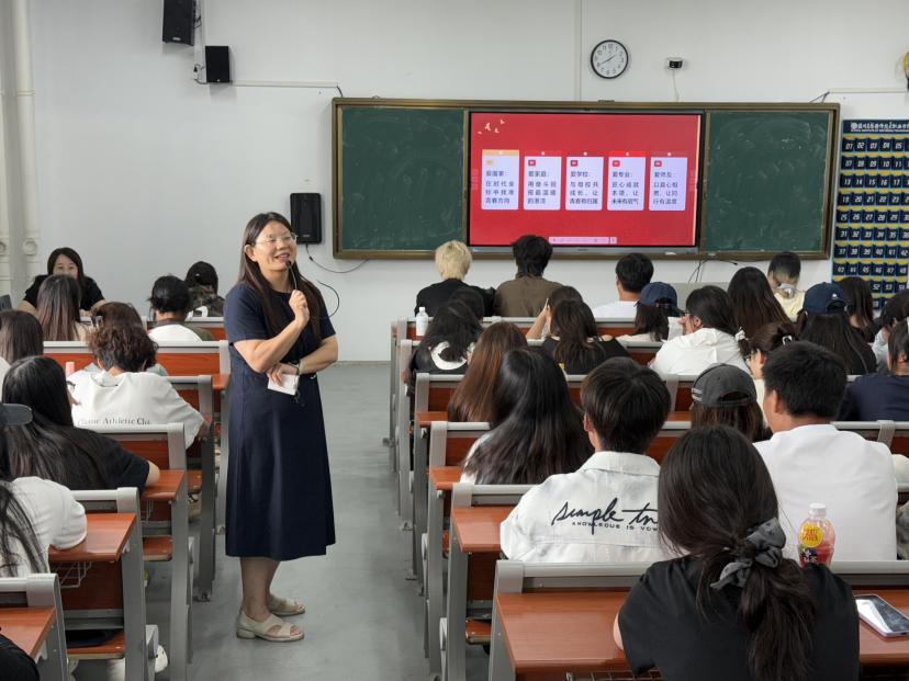 随后,国际商学院常务副院长张静以“以‘五爱’之心,筑青春之路”为主题,为新生们带来了精彩的“开学第一课”讲座。张院长围绕“五爱”,用鲜活的案例与深刻的思考,引导新生理解“爱”的多重维度。她指出,“爱国家、爱家庭、爱学校、爱专业、爱师友”是相互关联、相互促进的整体,希望新生能在生活中传承“五爱”,在学习中践行“五爱”,让青春在“爱”的滋养中绽放光彩。