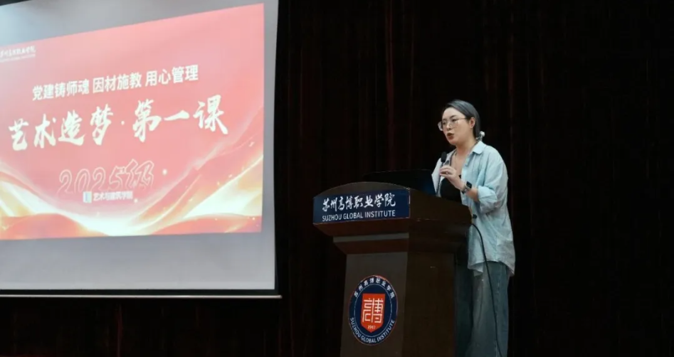 秋阳朗照,点亮崭新序章。9月28日上午,苏州高博职业学院艺术与建筑学院2025级“艺术造梦”第一课在学校报告厅隆重举行。学院领导、教师代表及全体2025级学生齐聚一堂,共同开启“造梦艺术”新征程。艺术学院副院长孔庆婷主持活动并代表全院教职员工向2025级新同学致以诚挚欢迎。