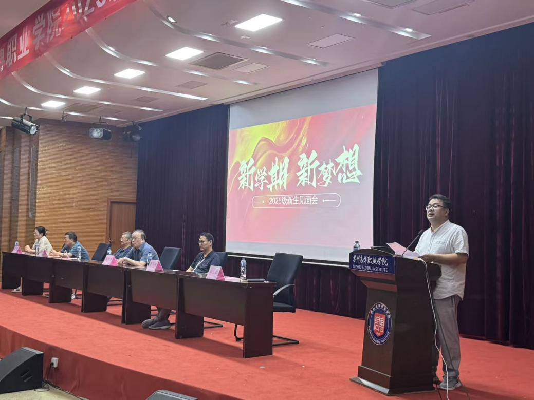 见面会的第四环节,苏州高博职业学院副校长周肖兴发表讲话。周校长结合当前行业发展趋势,强调了实践能力与创新思维在职业发展中的重要性,将理论知识与实际应用紧密结合。同时,周校长也表达了对新生们的美好祝愿,希望大家在大学生活中不仅能收获知识与技能,更能培养独立思考和解决问题的能力,成长为符合时代发展需要的高素质技术人才。