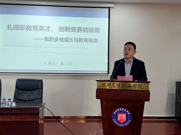 为深入推进党建与教育教学、科技创新、人才培养深度融合,切实落实为党育人、为国育才的根本使命,2025年11月5日下午1:30,机电工程学院党总支在行政楼14-215会议室隆重举办“扎根职教育英才,创新竞赛结硕果——我的多维成长与教育使命”主题报告会。报告会特邀学院正高级实验师、苏州市数控技术技能大师盖立武老师担任主讲,机电工程学院副院长韩丽东主持,学院全体教职工及学生代表共同参加。本次活动由机电工程学院教工党支部精心组织,旨在通过行业专家的经验分享,为全院教职工搭建育人交流平台,为同学们点亮成长成才之路。