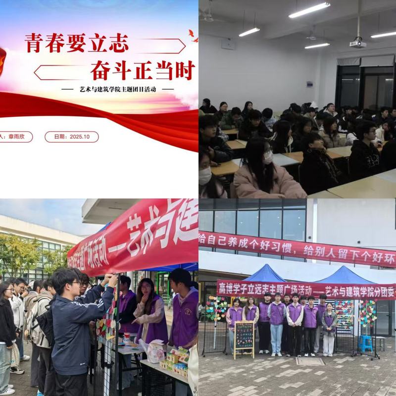 艺术与建筑学院分团委以“青春要立志,奋斗正当时”为主题,开展系列特色活动。通过理论学习强化青年使命担当,邀请优秀学生分享奋斗故事,激励学子坚定艺术初心。在“高博学子立远志”主题广场活动中,同学们写下青春誓言,将“每日阅读一小时”“学好专业技能,服务强国建设”等目标郑重挂在“理想心愿墙”上,五彩卡片随风飘扬,汇聚成一道奋进的青春风景线,让爱国主义教育在美育实践中走深走实。