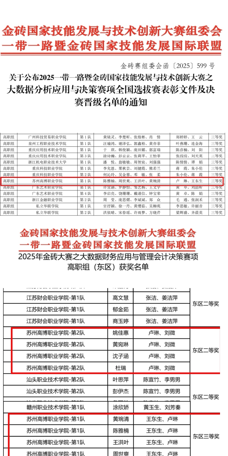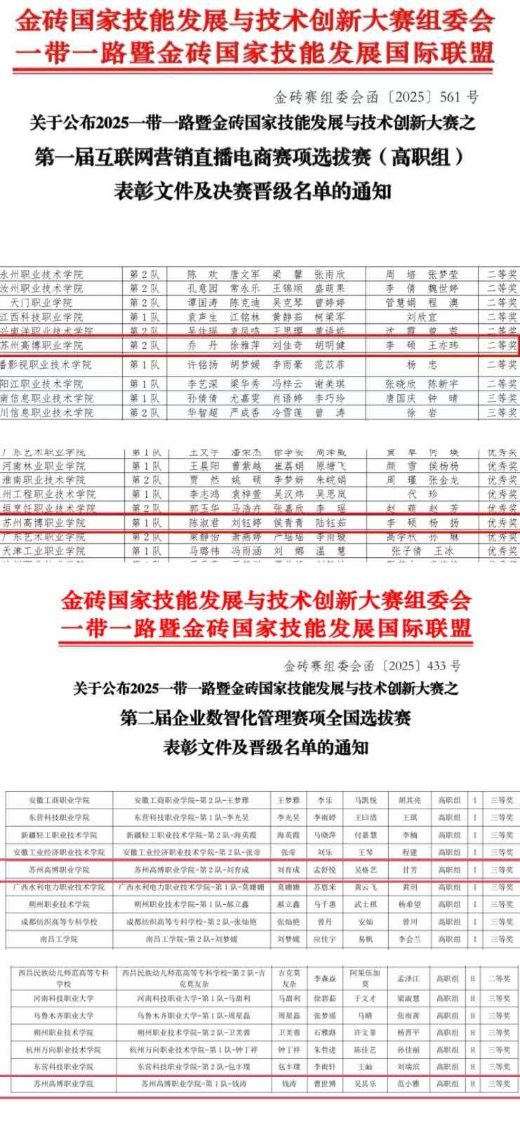 本次大赛的丰硕成果,不仅为学校赢得了荣誉,更为备战即将到来的江苏省高职院校技能大赛积累了宝贵经验、锻炼了骨干队伍、储备了优秀人才。通过参与此类高水平、国际化的赛事,学生们拓宽了视野,磨炼了技艺,增强了解决复杂实际问题的能力。这批在大赛中经受住考验、表现优异的学子,已成为学院冲击省赛更高奖项的有力竞争者。未来将认真总结本次参赛经验,进一步优化训练机制,强化优势项目,补齐短板弱项,力争在后续的江苏省高职院校技能大赛中再创辉煌,为区域经济社会发展培养输送更多优秀的创新型、发展型、复合型技术技能人才。(国际商学院供稿)
