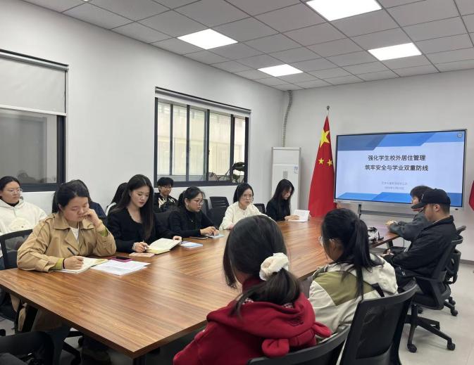 学院组织走读生安全教育主题会议,围绕交通出行、消防安全、租房安全、防诈骗、人身财产保护等重点内容,结合典型案例,引导学生增强安全防范意识和自我保护能力。辅导员详细讲解日常行为规范与安全责任要求,强调遵守规则、注重防范的重要性,并逐一核实学生居住地址、通勤路线等关键信息,建立和完善走读生安全管理档案,确保精准掌握每一位走读生的动态情况。同学们认真聆听、积极互动,纷纷表示将自觉遵守安全准则,守护好自身安全。