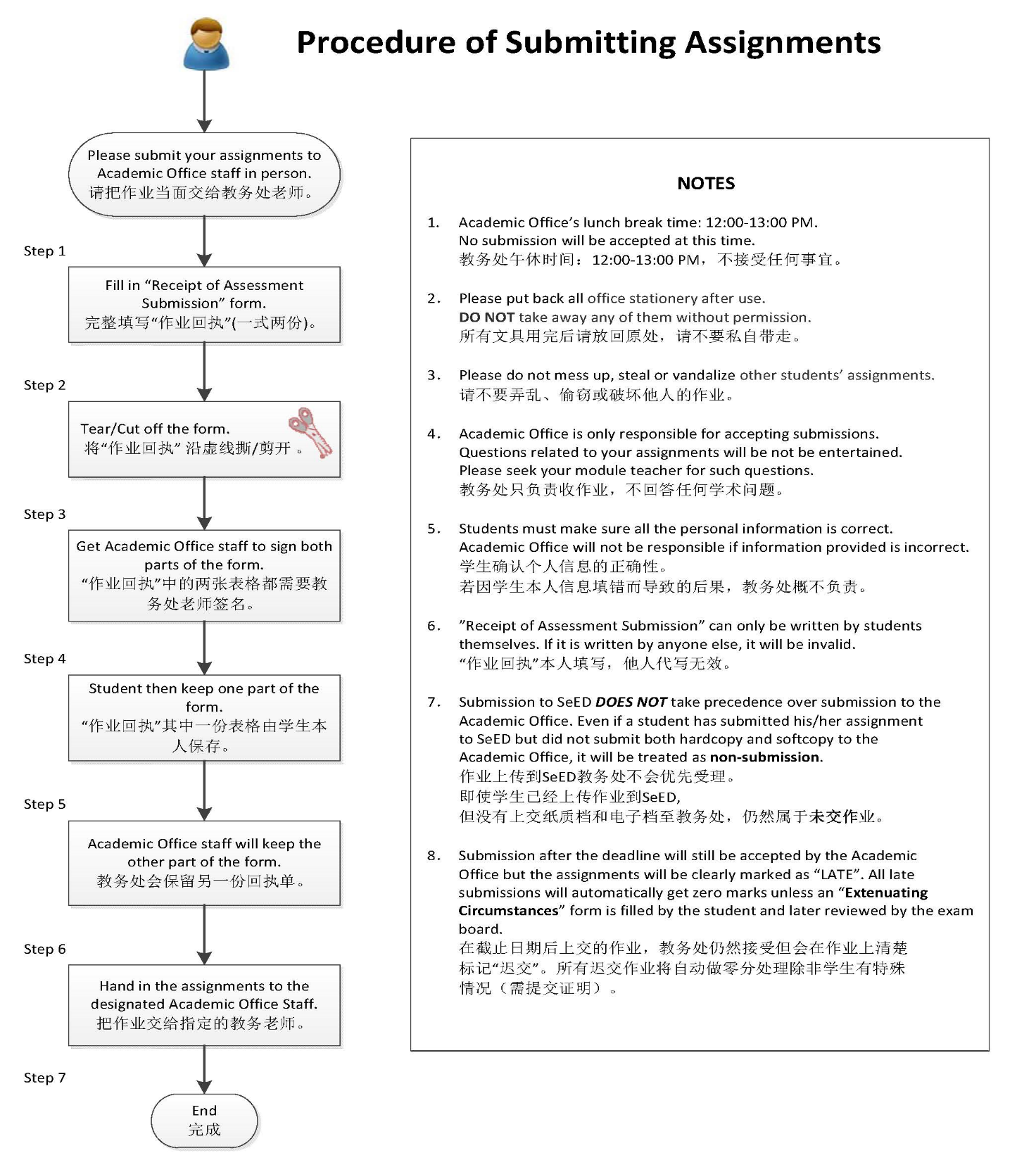 Should you miss more than 20% of the total lessons for a particular module, your assigned school counselor will warn you again and contact your parents. In addition, Student Service Office will issue a warning letter to you and your parents, which you will need to sign-off.