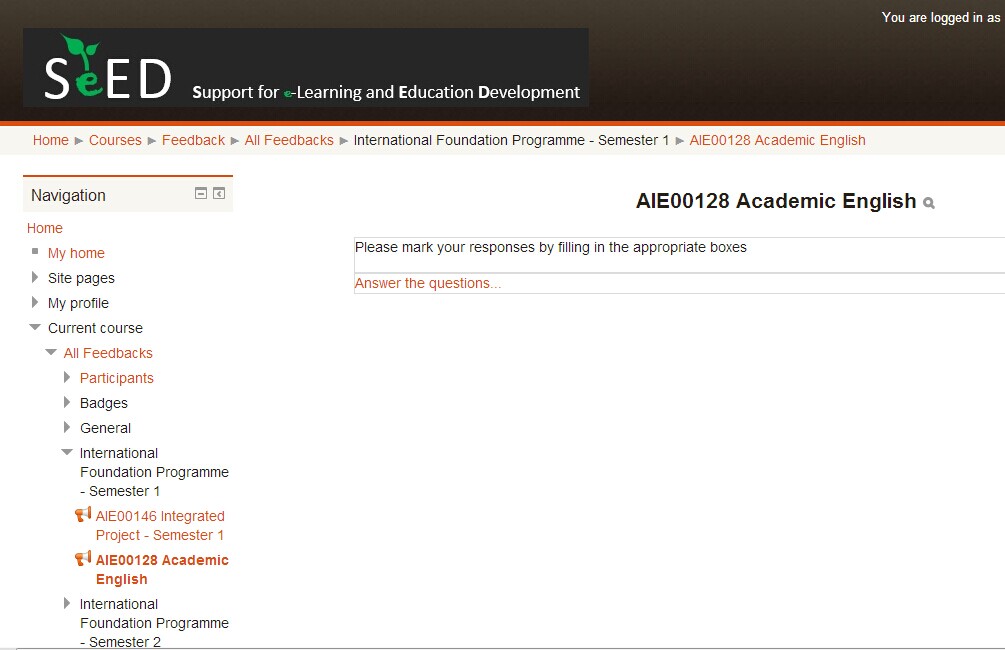 SeED is an online 'Virtual Learning Environment' where you can explore, discuss and learn about your chosen subject. You have direct access to your academic lecturers, the learning support staff and your student peers. You can connect to SeED from any computer/mobile devices with internet access.