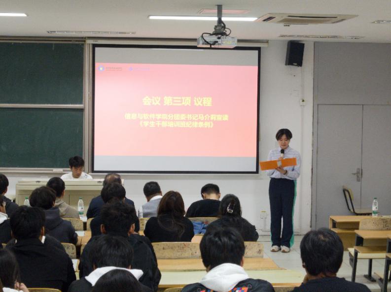 11月12日14:00,信息与软件学院“青年干部培训班”开班仪式在12-306举行。学校副校长、学院党总支书记周肖兴教授,学生工作部部长、关工委秘书长邹艳星副教授,学生工作部副部长、校团委书记王鑫老师,学院党总支副书记、副院长郑兰松副教授出席仪式。学院大一80余名学生干部代表现场参加培训,开班仪式由学院分团委书记马介莉主持。