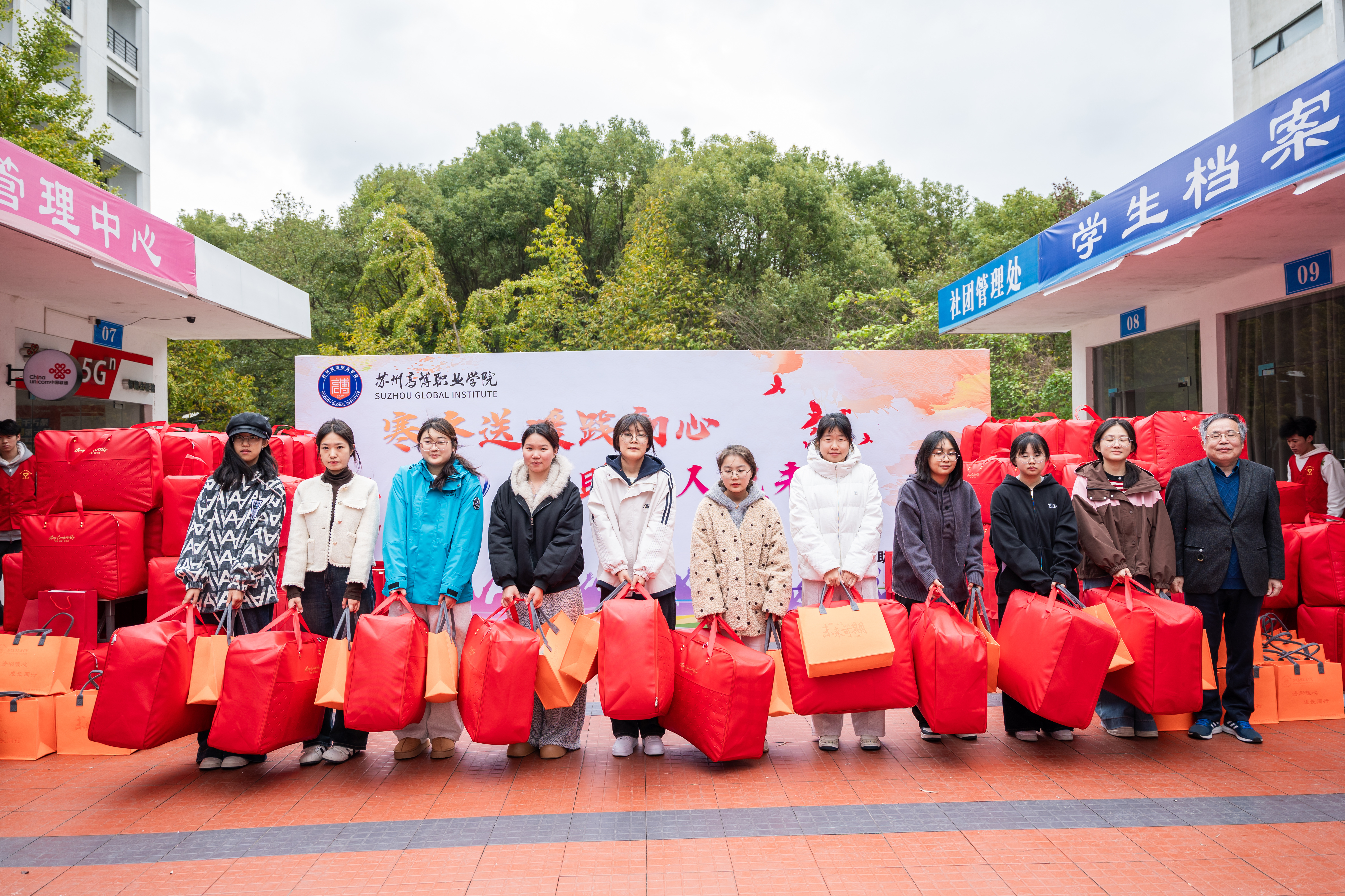 凛冬已至,暖意盈校。为切实筑牢家庭经济困难学生帮扶防线,将“资助育人”理念落到实处,11月17日上午,我校在爱心小屋广场开展了“寒冬送暖践初心,资助育人筑未来”主题慰问活动,校党委副书记、副校长、校关工委常务副主任徐子良教授,学生工作处处长、校关工委秘书长邹艳星,学生工作处副处长周萍,各二级学院党总支副书记、资助负责老师,学生资助管理中心老师及各学院受助学生代表共同参与活动,将满载关怀的御寒“暖心包”精准送达困难学生手中。