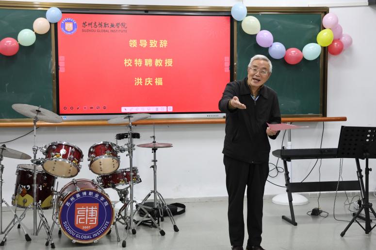 开幕式上,洪庆福教授首先发表了热情洋溢的致辞。他以“在语言的星河里,遇见更大的世界”为题,回顾了外语文化节历年来的精彩瞬间,指出外语学习不仅是语言能力的锻炼,更是自信表达、文化理解与自我绽放的重要契机。洪教授强调,在人工智能快速发展的今天,外语文化节正是要让技术“染上暖色调”,让语言回归人与人的温暖连接,打造一个“看得见笑容、听得到心跳”的跨文化实景游乐场。他鼓励同学们勇敢表达、积极互动,在语言的星河中探索更广阔的世界,成为兼具“中国心”与世界眼的时代青年。