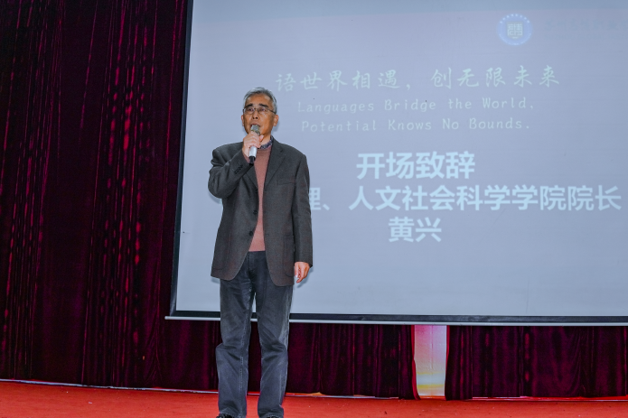 黄兴院长在闭幕式上致辞。他回顾了本届外语文化节的系列精彩活动,向组织者与参与者表示感谢。他强调,外语是跨文化沟通的桥梁,是洞察世界文明、参与全球协作的重要工具。当前中国对外开放持续深化,国际经贸与人文交流日益密切,扎实的外语素养已成为新时代人才的核心竞争力。希望同学们保持语言学习热忱,深耕基础、提升应用能力,同时以文化节为契机,主动了解多元文化,拓宽国际视野,锤炼跨文化沟通能力,为未来投身国际交流、服务国家发展筑牢根基。