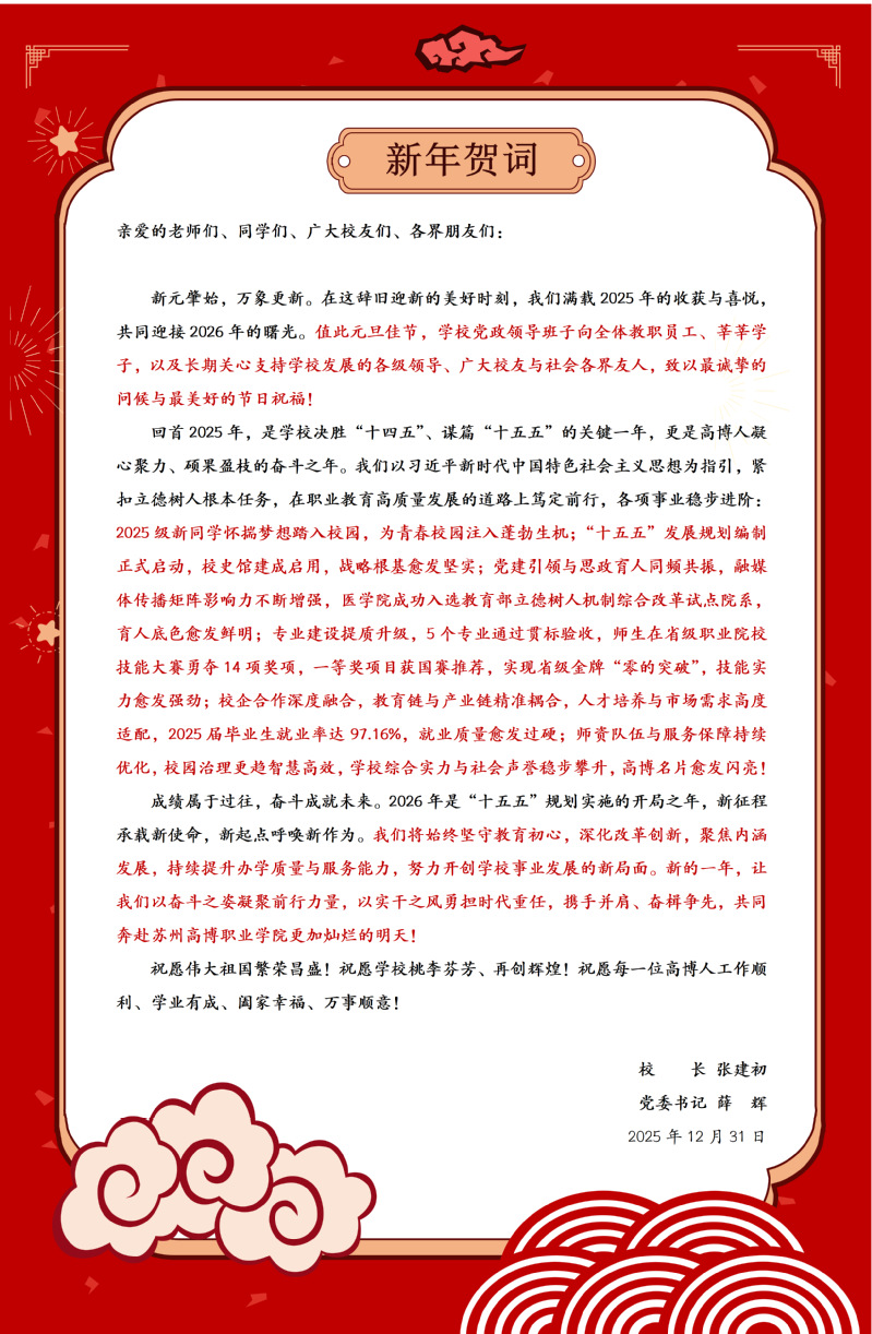 踔厉奋发担使命 笃行实干启新程——苏州高博职业学院2026年新年贺词