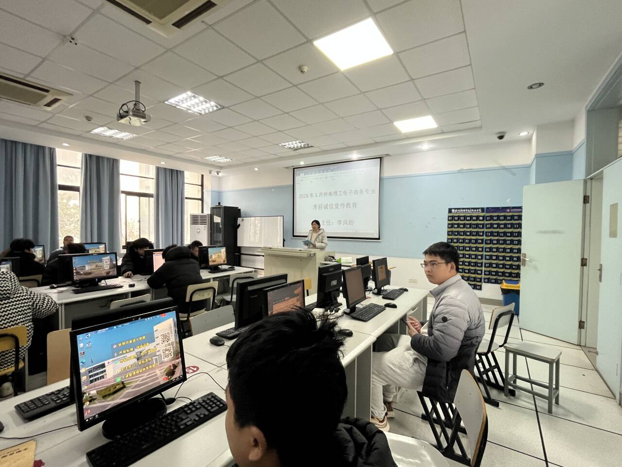 活动中,各班主任老师分别深入2025级网络与新媒体专业、2024级电子商务专业班级,通过线上线下相结合的方式,向参加1月份考试的同学们详细讲解了考试纪律的重要性。近年来,教育部对考试违纪行为的处理力度不断加大,一旦发现作弊行为,将严肃处理并计入学生的诚信档案。