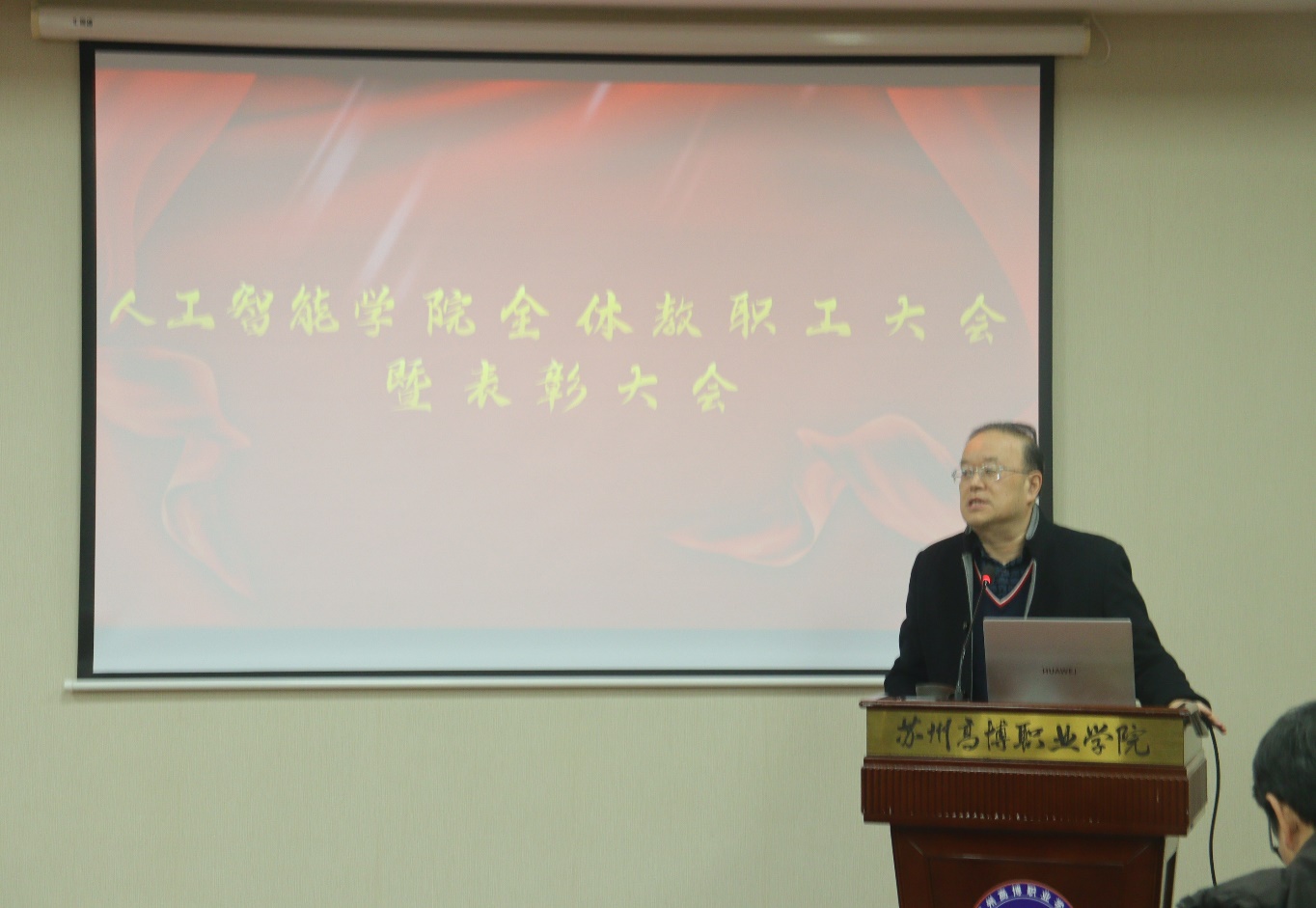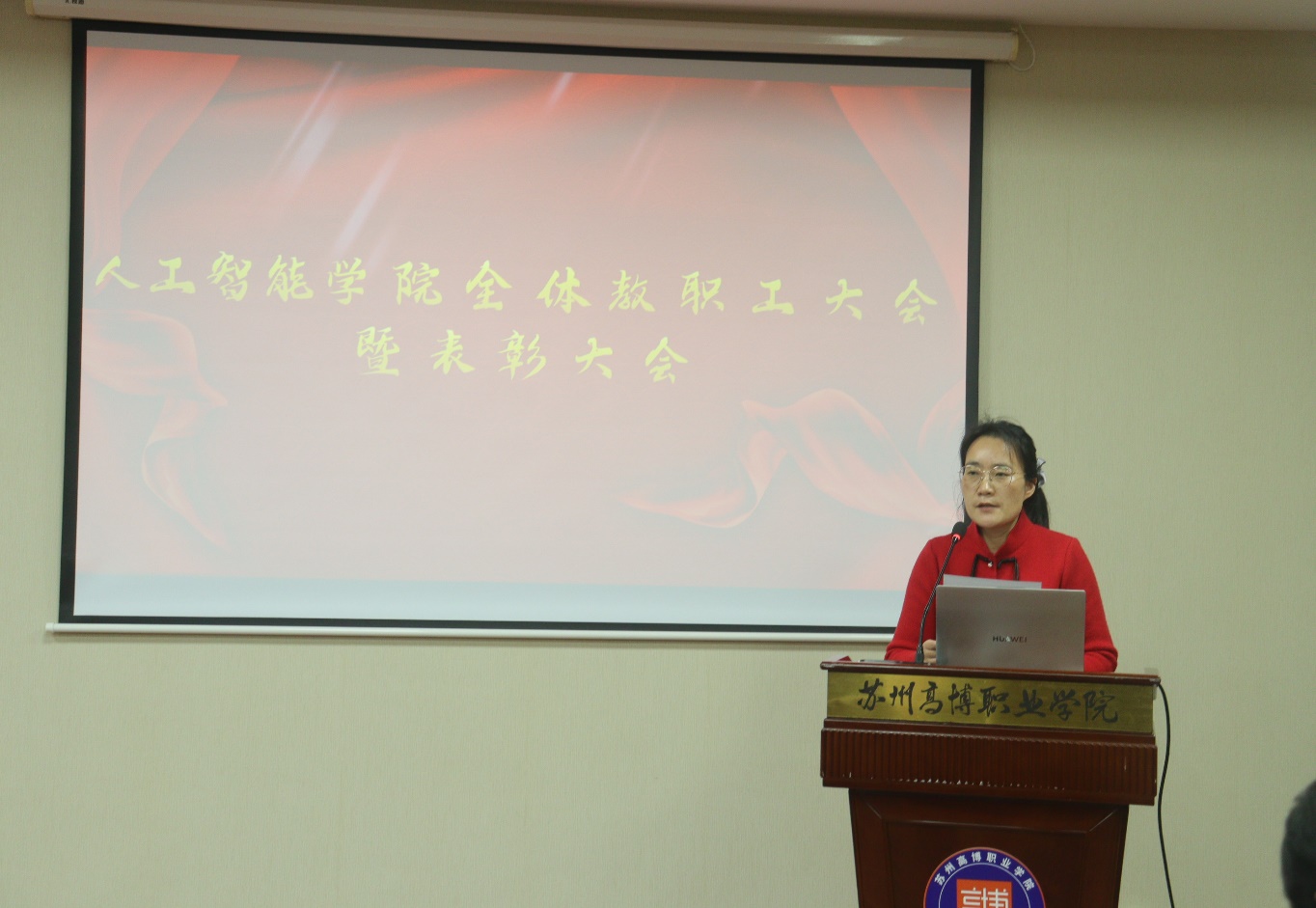 2025年1月13日14:00,苏州高博职业学院人工智能学院全体教职工大会暨表彰大会在行政楼14-215会议室隆重召开。学院全体教职工参会,会议由副院长李月峰主持。