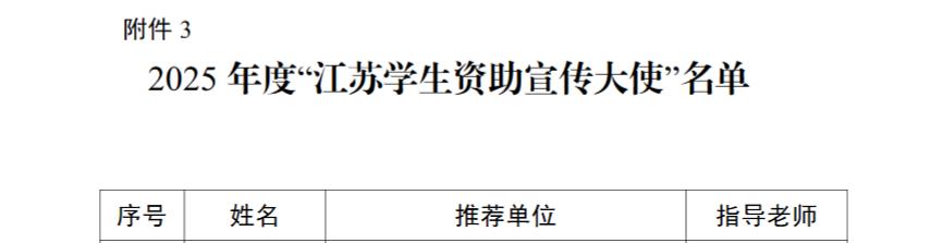 近日,江苏省教育厅正式公布2025年“苏乡永助”资助育人主题活动评选结果,我校资助工作喜获佳绩——学生处周萍老师的工作案例荣获江苏省“资助育人工作案例”,艺术创意设计学院2024级章雨欣同学获评2025年度“江苏学生资助宣传大使”,充分彰显了我校资助育人工作的扎实成效与丰硕成果。