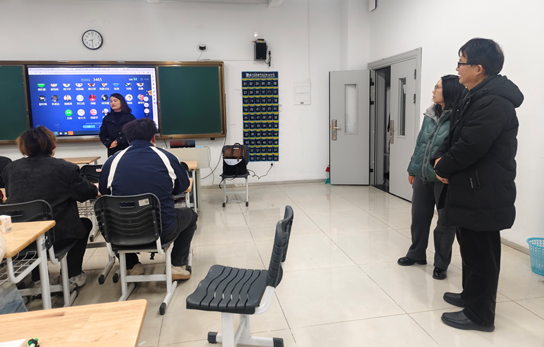上午8点15分,学院院长黄兴、党总支书记吴建明、副院长王安列、特聘教授洪庆福、副院长马亚丽、党总支副书记兼副院长赵雪飞、院长助理高亮及办公室主任侯宇晨等一行人分组前往各教学场所,实地查看课堂教学运行情况。