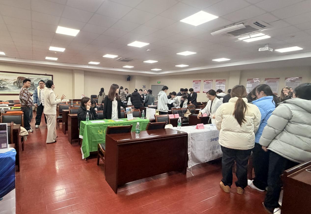 与此同时,15-B201教室中,上海亚湾酒店管理有限公司的专业导师团队为24级酒旅班学生开展了干货满满的研学分享与专场面试指导会。导师们以学生此前赴上海的高端酒店研学之旅为核心,通过现场照片、视频等素材,带领学生复盘研学过程中的行业见闻、各岗位实操体验与企业参访心得,重点提炼了虹桥香格里拉、安达仕等酒店在服务流程、岗位协作、客户需求响应等方面的行业标准与实操技巧,让学生们将研学中的直观感受转化为系统的岗位能力认知。针对下午即将开展的专场宣讲招聘会,导师团队进行了系统化的面试指导,从简历优化的细节技巧、酒旅行业专属的面试礼仪、不同岗位的高频面试问题应答思路,到现场交流的表达技巧与心态调整,进行全方位、细致化的讲解。导师们还结合自身多年的酒店招聘经验,分析了酒旅企业的人才选拔标准,现场邀请学生进行模拟面试,一对一指出问题并给出改进建议,为学生梳理面试重点、解答求职疑问,帮助大家查漏补缺,做好充分的求职准备,有效提升了学生们的应聘竞争力。乔桂明院长、张静常务副院长、顾金峰副院长等领导先后前往两个活动现场参观指导,与企业讲师、导师及学生亲切交流,对活动的精准策划、内容设计与高效开展给予高度肯定,并鼓励学生珍惜与企业面对面交流的学习机会,积极对接行业需求,扎实锤炼专业技能,为未来的职业发展打下坚实基础。