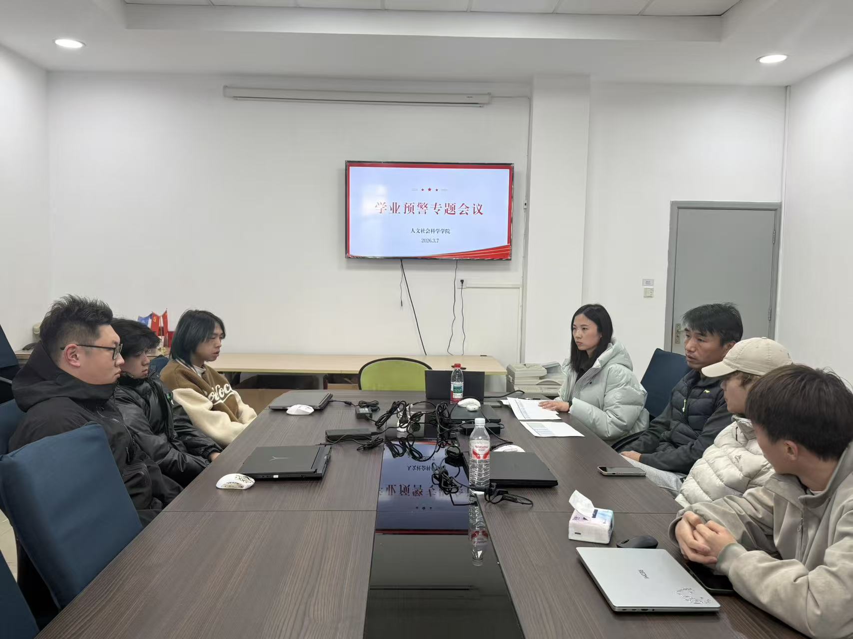 为扎实推进学风建设,加强对学业困难学生的精准指导与人文关怀,3月7日,人文社会科学学院在学院会议室组织召开了学业预警专题会议。学院党总支副书记、副院长赵雪飞,休闲体育专业教研室主任张赞,辅导员吴敬德及7名学业预警学生参会。