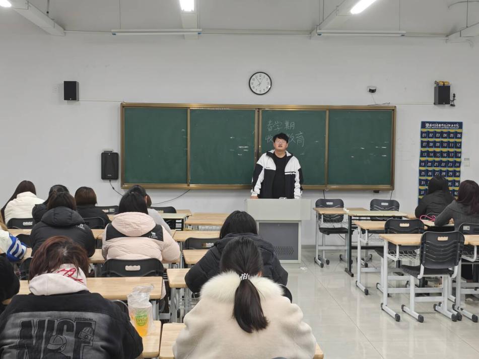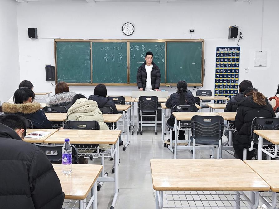 学生办公室主任杜相锋以课堂考勤与精神风貌为核心展开讲解。他强调,课堂考勤是学风建设的基础,新学期学院将持续严格执行考勤制度,对迟到、早退、旷课等行为坚持“零容忍”,做到考勤记录每日清、每周核,将考勤情况与学生综合素质评价紧密挂钩。同时,他呼吁同学们尽快调整精神状态,告别懒散的作息习惯,以昂扬向上的精神面貌走进课堂,做到上课专心听讲、课后及时复盘,在班级中营造比学赶超、勤学善思的良好学习氛围。