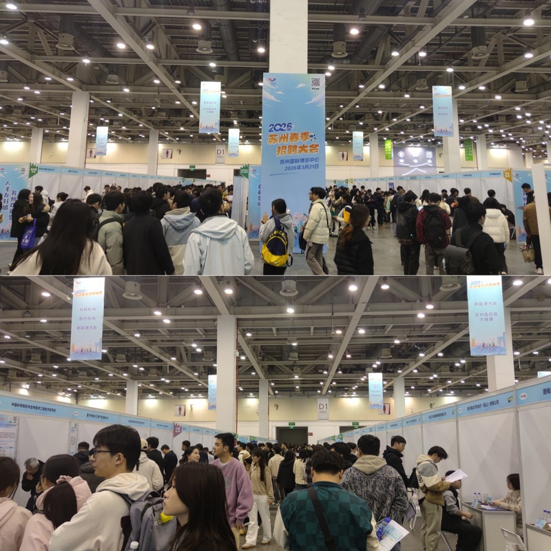 为全面落实高校毕业生高质量充分就业工作要求,扎实推进学生就业工作,精准对接苏州产业人才需求,搭建高效优质的校企双向选聘平台,3月21日,我校精心组织学生参加苏州市举办的2026苏州春季招聘大会,抢抓春季招聘关键窗口期,多措并举全力助力学子实现更高质量、更充分就业。