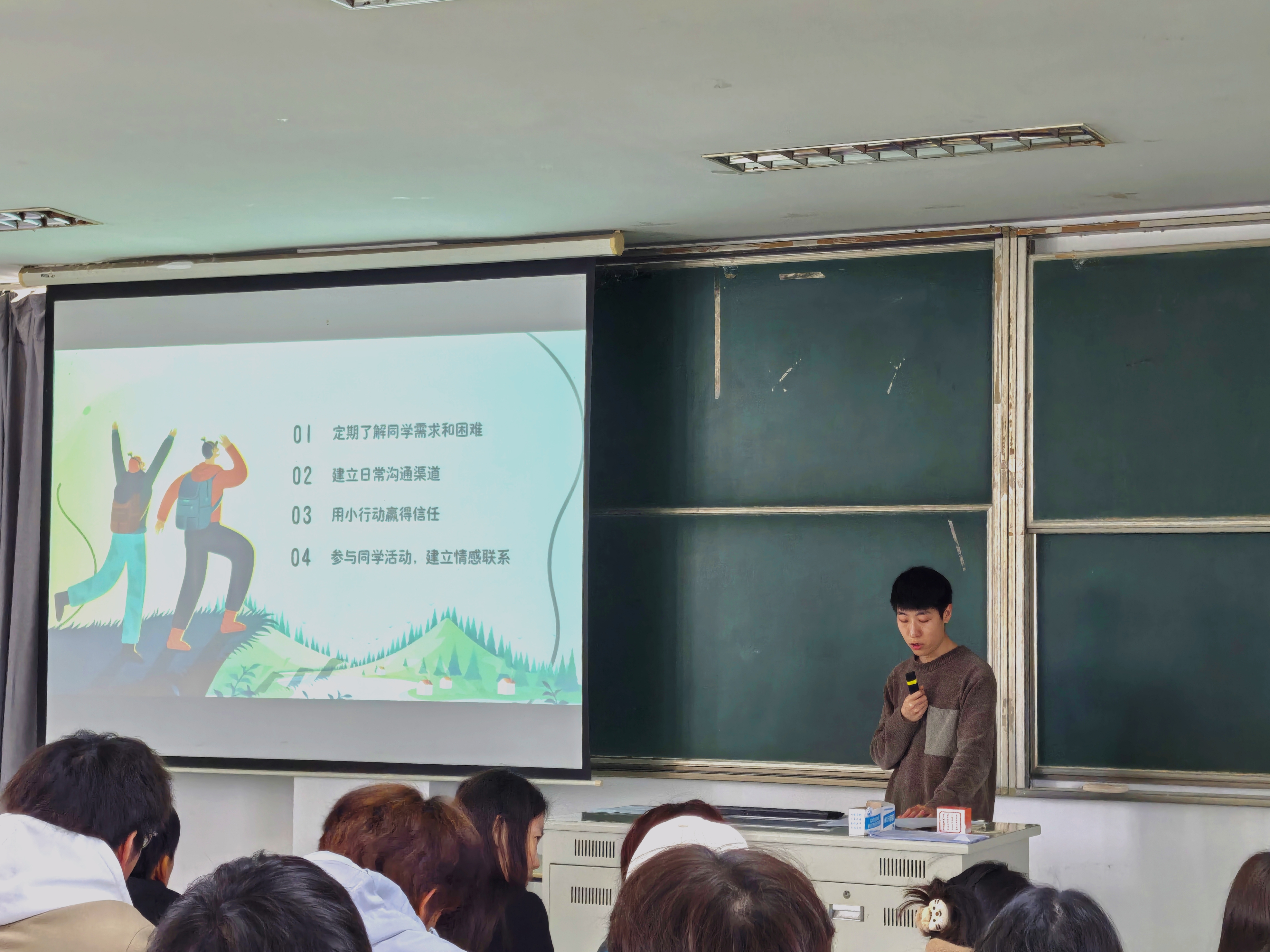 彭斯研老师以“班级自治”为主题,引导班干部思考“大学意味着什么”。他强调,班委工作不是“三分钟热度”,更不是高高在上的“管理者”,而是连接师生的桥梁。彭老师提出“先服务后管理”的理念,鼓励班干部通过定期了解同学需求、建立沟通渠道、参与集体活动来赢得信任,从而实现从“管得住”到“带得好”的转变。
