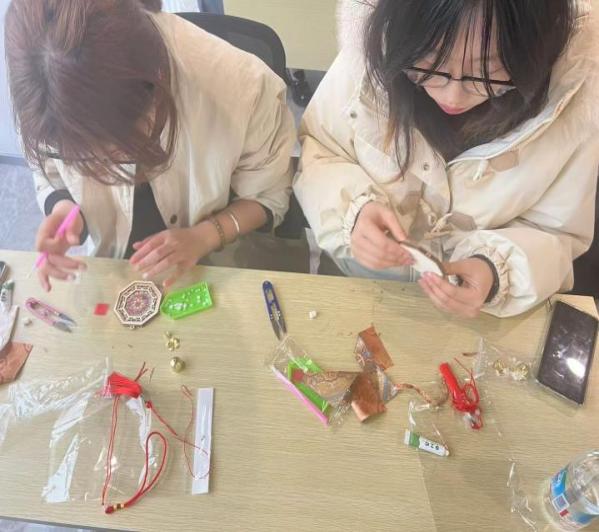 手作风铃互动环节中,我院学生与社区社工、志愿者携手创作,亲手制作造型多样的风铃作品。在动手实践中舒缓压力、增进情谊,既传递了守望相助的人文关怀,也凝聚了校社协同共建的强大合力,生动展现了我院学子团结友善、乐于奉献的青春风采。同时,活动设置社工理念宣传专区,工作人员系统解读“五社联动”内涵、志愿服务内容及岗位需求,鼓励同学们立足AI专业所长,主动参与社区服务,将专业知识转化为服务社会的实际力量。