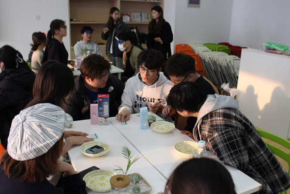 团建的第一个活动为青团制作。社团各部门成员围坐在一起,共同参与其中。从称面、揉面到包馅、成型,不同部门的同学们默契配合,在协作与交流中感受春日暖意,也让普通的食材变成了饱含心意的春日味道。