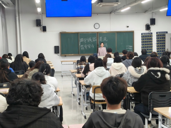 班会中,辅导员围绕学院近期各类考试安排,深入开展诚信考试专题教育。详细解读学校考试纪律及违规处分相关规定,通过案例警示等方式,教育引导学生树立正确的考试观,自觉抵制作弊行为,坚守诚信底线,以真实水平检验学习成效,共同维护公平公正的考试环境。