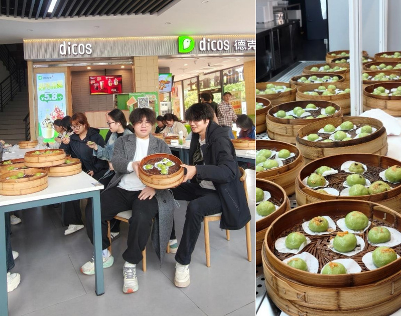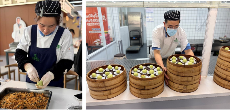 活动前,食堂工作人员提前活好青团面团,备齐馅料、案板、蒸屉、一次性手套等制作材料与工具,在现场细致讲解了并示范了包青团的流程与操作技巧。活动现场,同学们热情高涨、分工协作,按照步骤认真操作,从取皮、包馅到捏合、塑形,一步步熟练掌握制作要领,在亲手实践中体悟劳动的细致与不易。现场秩序井然,氛围温馨热烈。
