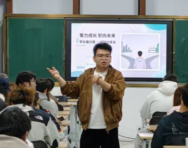 分享环节中,王硕学长结合自身经历,围绕“该做什么、不该做什么、如何把握机会”三条主线,为大一同学梳理了大学三年的行动框架。他强调,大一是探索与试错的黄金时期,应主动了解专业方向、广泛参与社团与竞赛,但同时要避免盲目跟风、沉迷无效娱乐;大二则需要聚焦核心能力提升,考取有价值的证书;大三则应提前明确毕业去向,系统准备求职材料,抢占先机。