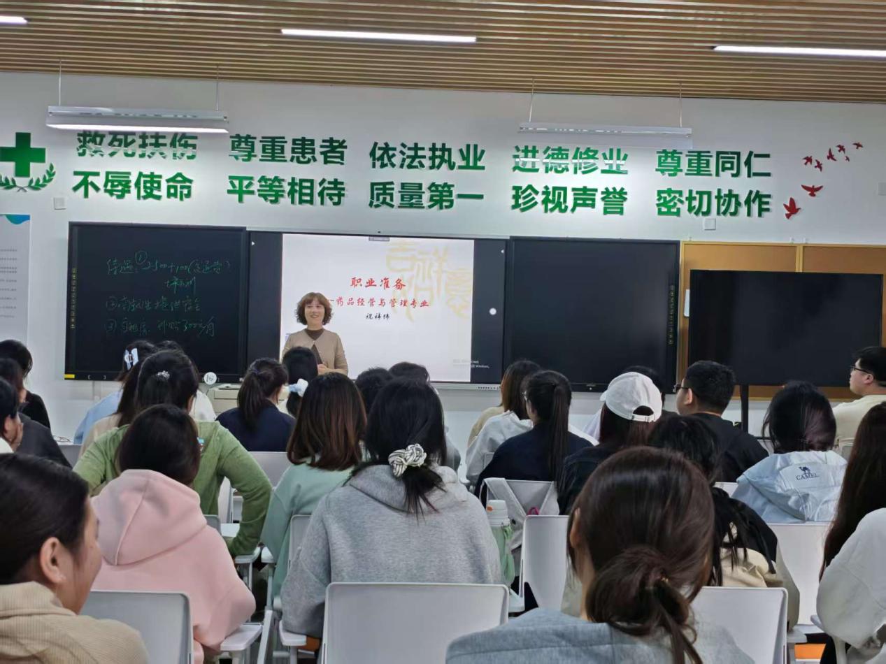 2026年4月15日,在企业宣讲活动圆满落幕后,药学系主任、药品经营与管理专业负责人祝祎玮教授为在场学生带来了一场内容详实的职业准备专题讲座。
