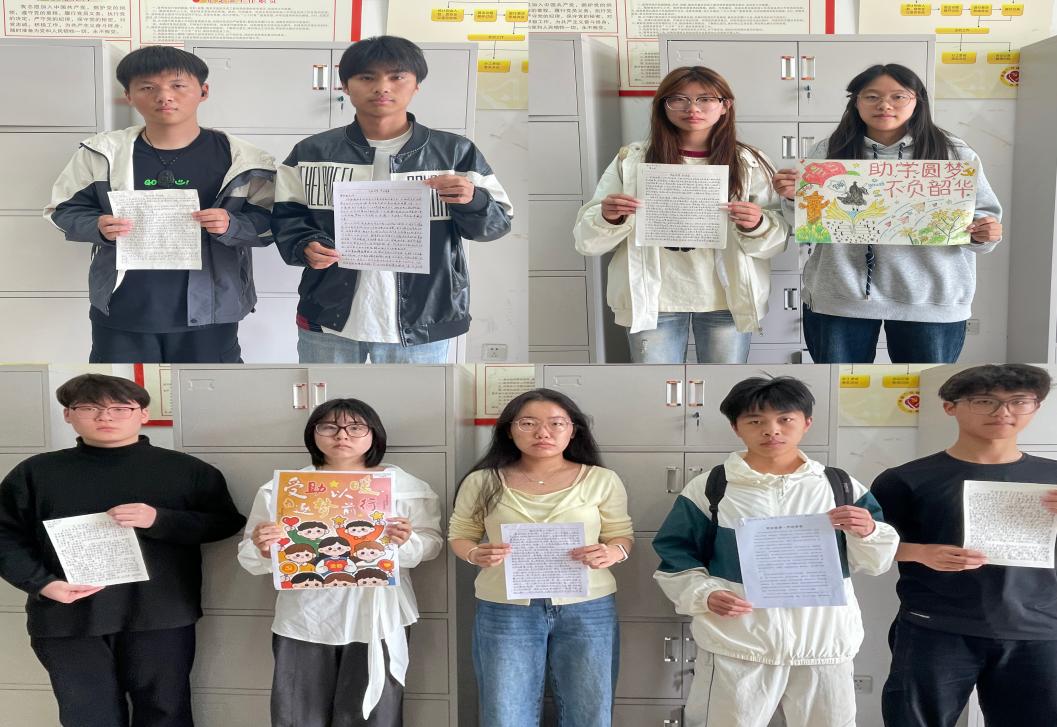 活动启动后,学院学生积极响应,广大学生踊跃参与。在征文作品中,受助学生以细腻笔触讲述自身经历:有人回忆初入校园时因家庭经济困难产生的迷茫,在国家助学金和助学贷款的支持下得以安心求学,最终通过勤工俭学实现“自助—助人”的转变;有人记录参与“资助政策下乡宣讲”的感悟,将资助政策传递给更多家庭,践行“受助—反哺”的责任。这些文字真实质朴,既有对资助政策的深切感恩,也有对青春奋斗的深刻思考。